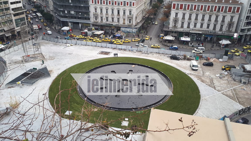Το σιντριβάνι (διαμέτρου 30 μέτρων, με 13 πίδακες και 188 δέσμες νερού, αλλά και 90 υποβρύχιους προβολείς) τοποθετήθηκε πριν από λίγες ημέρες και σήμερα, Πέμπτη 6 Φεβρουαρίου, ήταν η σειρά του γκαζόν να μπει στην πλατεία Ομονοίας.