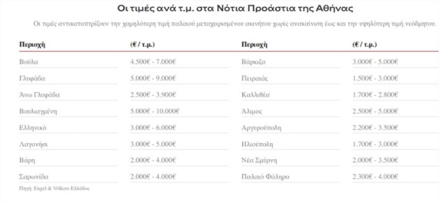 Από τον Πειραιά μέχρι το Σούνιο, το παραλιακό μέτωπο της Αθήνας είναι αυτό που βρίσκεται σταθερά τα τελευταία χρόνια στο προσκήνιο με πληθώρα έργων υπό ανάπτυξη που αναμένεται να προσδώσουν περαιτέρω υπεραξία σε όλες τις περιοχές που βρίσκονται στα πέριξ. Πέρα από τις πολύ ακριβές περιοχές των νοτίων προαστίων, τη Βούλα, τη Βουλιαγμένη και τη Γλυφάδα που βρίσκονται σταθερά στο επίκεντρο της ζήτησης, ήδη τα τελευταία χρόνια από τις πλέον ανερχόμενες είναι το Ελληνικό λόγω ακριβώς του μεγάλου project για την αξιοποίηση της έκτασης των 6.200 στρεμμάτων του πρώην αεροδρομίου, ενώ ιδιαίτερη δυναμική για το επόμενο διάστημα φαίνεται ότι συγκεντρώνει στην άλλη άκρη ο Πειραιάς, όπου πλέον υπάρχουν αρκετά νέα έργα σε εξέλιξη, με πιο χαρακτηριστικό το μεγάλο project για την «πράσινη» ανάπλαση του Πύργου Πειραιά. Αντίστοιχα αναμένεται να συμβεί και στις περιοχές του Νέου Φαλήρου και του Μοσχάτου, όπου επίσης γίνονται έργα. Το Λαγονήσι, η Βάρη, η Σαρωνίδα, η Βάρκιζα και οι περιοχές μέχρι το Σούνιο και το Λαύριο είναι μεν πιο απομακρυσμένες, ωστόσο με την άνοδο των τιμών κατά τη διάρκεια των τελευταίων ετών στη Γλυφάδα, στη Βούλα και στη Βουλιαγμένη φαίνεται ότι προσελκύουν ολοένα και περισσότερους αγοραστές που ζητούν καλές τιμές κοντά σε θάλασσα, σύμφωνα με τις εκτιμήσεις της μεσιτικής εταιρείας Engel & Völkers Ελλάδας.