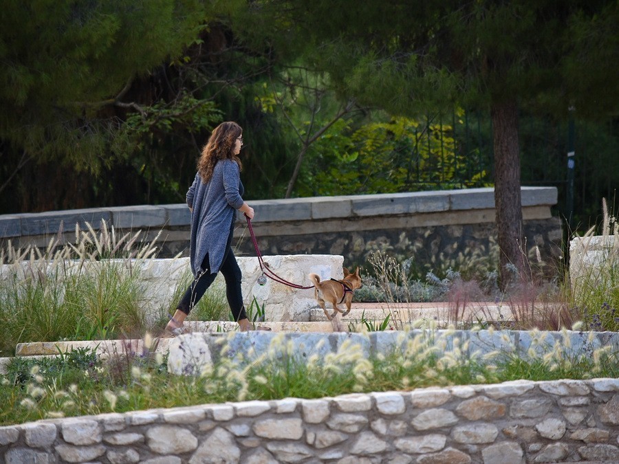 -Στο μεσαίο επίπεδο δημιουργήθηκαν δύο μεγάλα παρτέρια με μεσογειακά φυτά. Στο κέντρο του επιπέδου διαμορφώθηκε μία ακόμη ραμπόσκαλα, η κλίση της οποίας είναι κατάλληλη για την εύκολη πρόσβαση από το πιο ψηλό προς το πιο χαμηλό σημείο του χώρου.