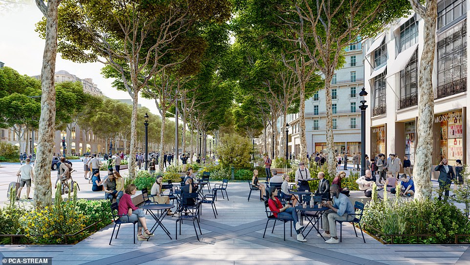 Σύμφωνα με τα νέα σχέδια του αρχιτέκτονα Philippe Chiambaretta και του γραφείου του, PCA-STREAM, η κυκλοφορία των οχημάτων θα μειωθεί κατά το ήμισυ, ενώ οι πεζοί θα μπορούν να απολαμβάνουν ευρύτερα πεζοδρόμια και περισσότερη πρασινάδα στους χώρους που το αρχιτεκτονικό γραφείο αποκαλεί πράσινα σαλόνια.