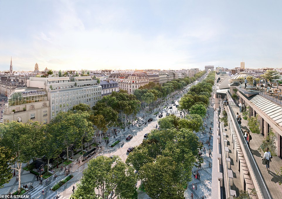 Η δήμαρχος του Παρισιού Αν Ινταλγκό άναψε το πράσινο φως για ένα πλήρες λίφτινγκ στην Champs-Élysées, αποδίδοντάς την ουσιαστικά στους πεζούς, δημιουργώντας χώρους πρασίνου και διατηρώντας ένα μικρότερο τμήμα για τα αυτοκίνητα.