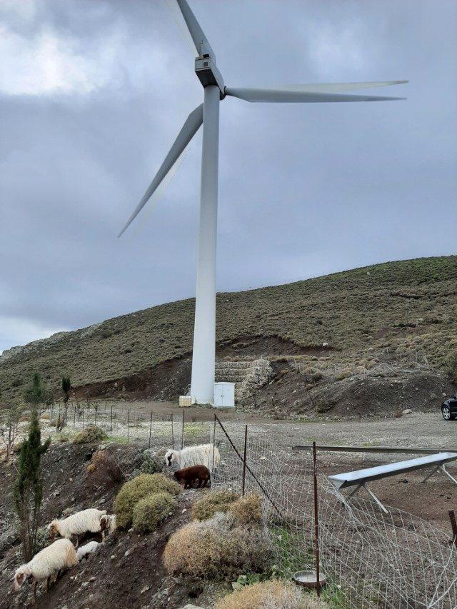 Στις 29/12 το απόγευμα κατευθυνθήκαμε νότια του Ηρακλείου και μετά από περίπου 40 λεπτά οδήγησης μέσα από γραφικά χωριά, βρεθήκαμε στην ιστορική Ιερά Μονή Αγ. Γεωργίου Επανωσήφη. Βόρεια της σε απόσταση λίγο παραπάνω από 500m βρίσκεται ένα αιολικό πάρκο. Οδηγήσαμε και μπήκαμε στο χώρο εγκατάστασης του. Εντός του έβοσκε ένα κοπάδι πρόβατα το οποίο συναντήσαμε στην πρώτη ανεμογεννήτρια.