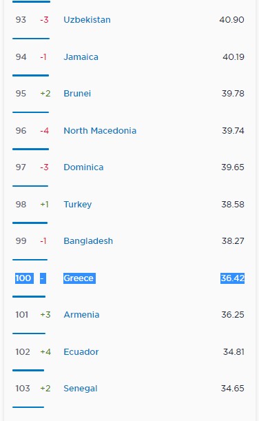 Από τα στοιχεία, που δημοσιοποίησε χθες η OOKLA, προκύπτει ότι η Ελλάδα, στις σταθερές ευρυζωνικές συνδέσεις, καταγράφει ταχύτητες 36,42 Mbps στο download και μόλις 8,52 Mbps στο upload και εξασφαλίζει ασθμαίνοντας την 100η θέση παγκοσμίως.